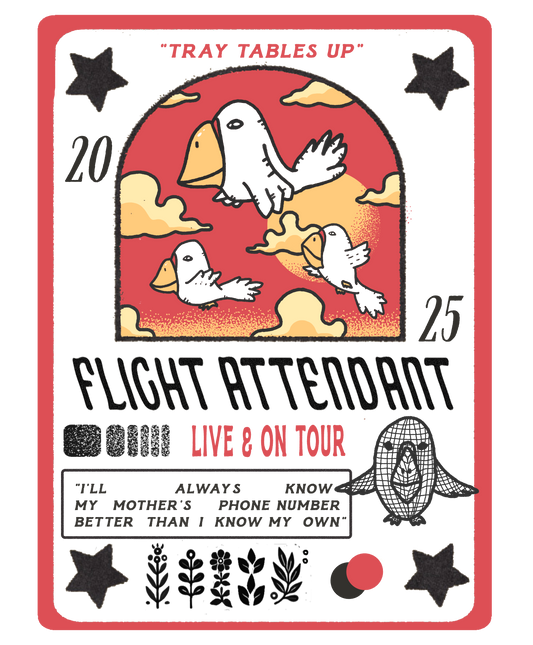 Since their inception, Flight Attendant has released standout singles like “Man of Chaos” and “Therapy Couch,” with the latter earning significant radio play in 2024. They’ve played sold-out shows around the world and at major festivals including SXSW, Boulevardia, Tomato Arts Fest, and Crossroads Music Fest.