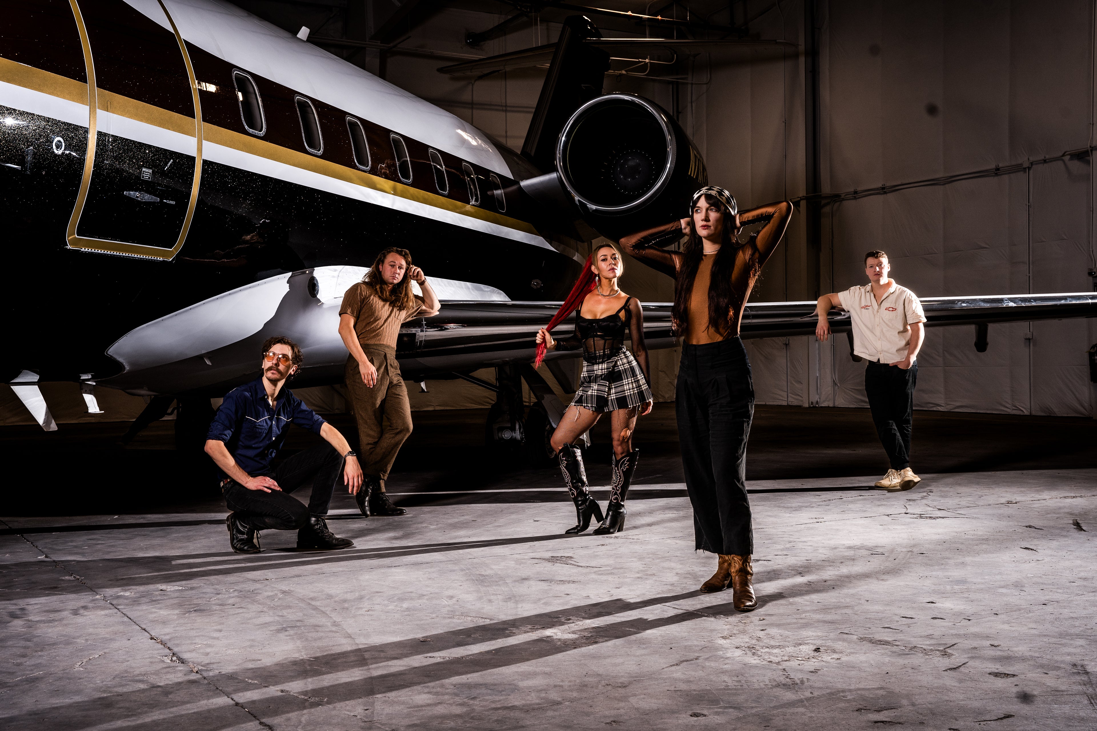 Hailed as a “sonic unicorn” in Nashville’s thriving music scene, Flight Attendant has built a reputation for delivering infectious power-pop hooks, cinematic soundscapes, and unforgettable live performances. This Nashville-based quintet—Karalyne Winegarner (Lead Vocals, Keys), Vincent Maniscalco (Vocals, Guitar), Nikki Christie (Vocals, Viola), Derek Sprague (Drums), and Peyton Rodeffer (Vocals, Bass)—blends their diverse musical influences into a sound that is as bold as it is distinctive.
